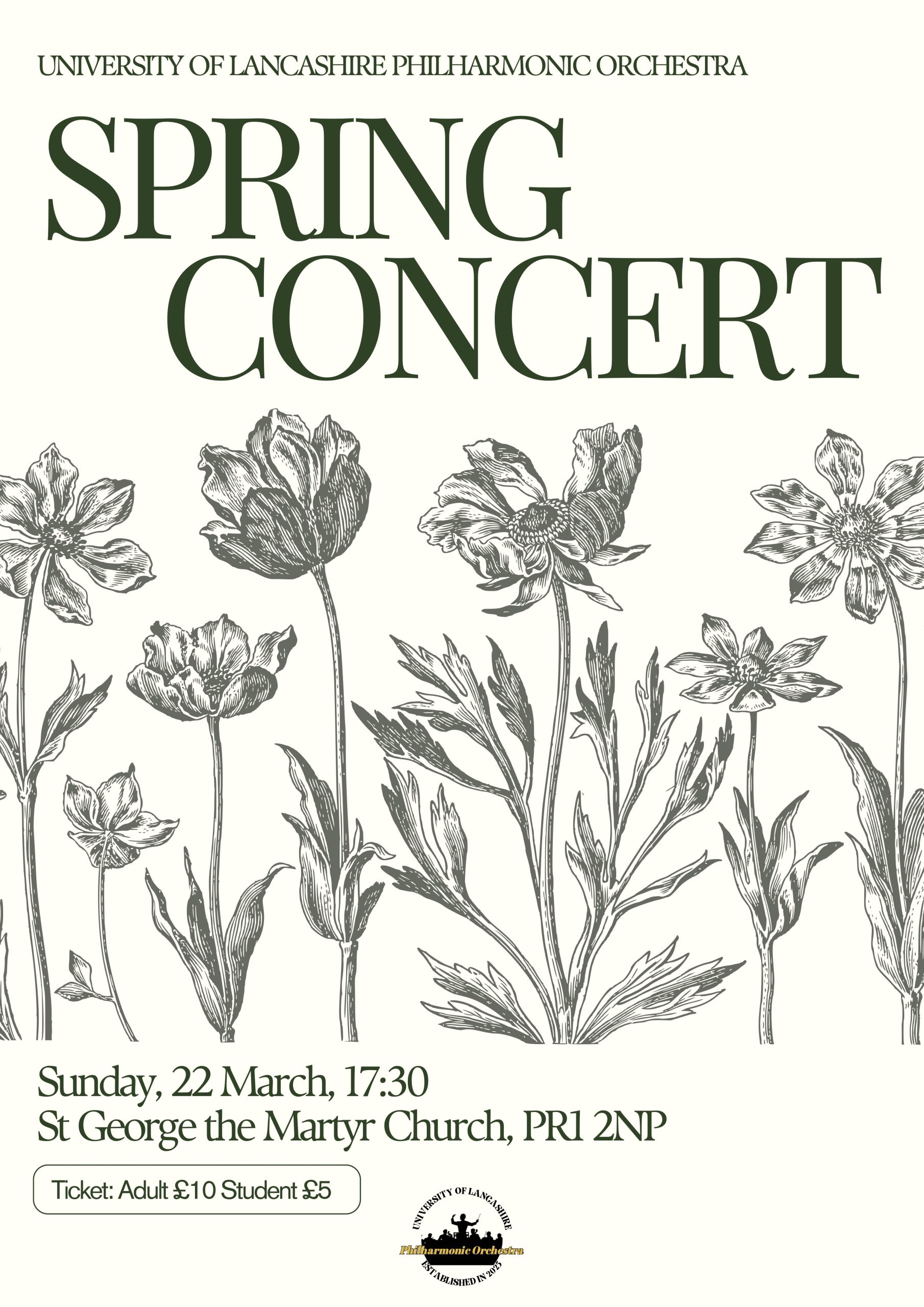 We are delighted to welcome back the University of Lancashire Philharmonic Orchestra as they perform a selection of Spring music. Tickets £10 (£5 student) and all proceeds will go to supporting the work of St George’s Church.